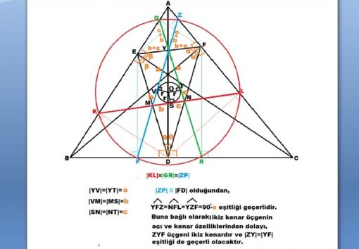 Ayrıca, YMN üçgeninin iç teğet çemberinin merkezi olan 0 noktası, aynı zamanda, K,L,G,R,Z ve P noktalarını içeren çemberin de merkez noktası olacaktır.