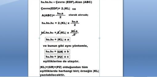 ha.hb.hc = Çevre (EDF) . Alan (ABC)